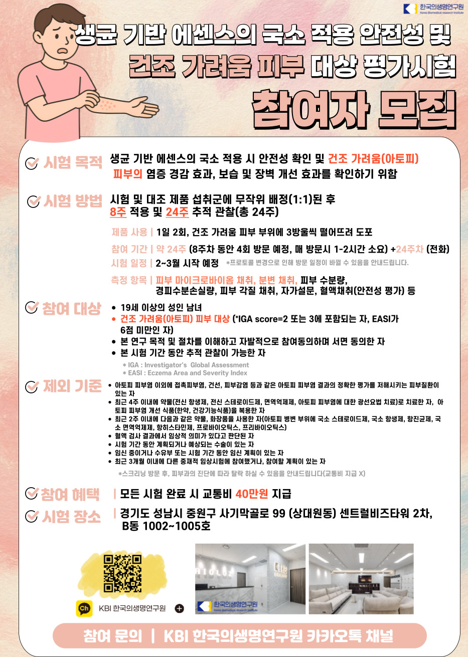 ½ÃÇè´ë»ó : ´«°¡ ÁÖ¸§/¸á¶ó´Ñ »ö¼ÒÄ§Âø ºÎÀ§°¡ ÀÖ°í ÇǺΠ°¡·Á¿òÀ» ´À³¢´Â ¸¸ 30-60¼¼ÀÇ Áö¿øÀÚ
