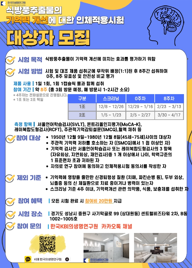 ½ÃÇè´ë»ó : ÁÖ°üÀû ±â¾ï·Â ÀúÇϸ¦ È£¼ÒÇÏ´Â ÀÚ,±â¾ï·Â °Ë»ç·Î ÀúÇϰ¡ È®ÀÎµÈ ÀÚ(¸ðÁý°ø°í »ó¼¼³»¿ë Âü°í)
