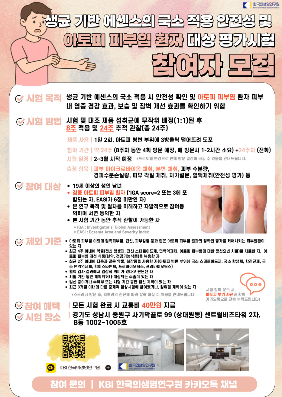½ÃÇè´ë»ó : ´«°¡ ÁÖ¸§/¸á¶ó´Ñ »ö¼ÒÄ§Âø ºÎÀ§°¡ ÀÖ°í ÇǺΠ°¡·Á¿òÀ» ´À³¢´Â ¸¸ 30-60¼¼ÀÇ Áö¿øÀÚ